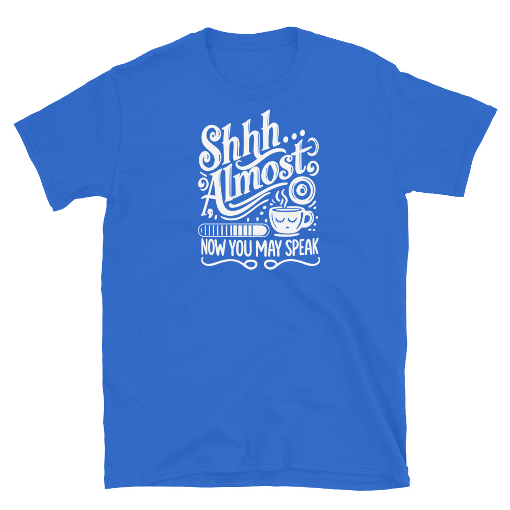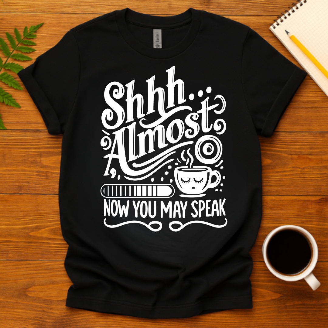 This Shhh Almost. Now You May Speak t-shirt is for the person who needs a moment of quiet focus before they can engage with the world. Itโ€™s a funny, non-verbal way of setting boundaries and a hilarious way to signal you’re almost ready to talk.